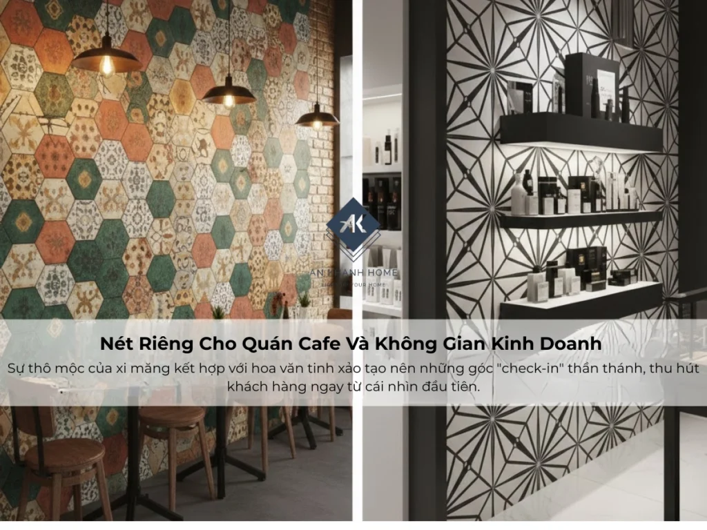 Các chủ quán cafe hiện nay cực kỳ ưa chuộng gạch bông lát nền để tạo phong cách "Vintage" hoặc "Industrial". Sự thô mộc của xi măng kết hợp với hoa văn tinh xảo tạo nên những góc "check-in" thần thánh, thu hút khách hàng ngay từ cái nhìn đầu tiên.