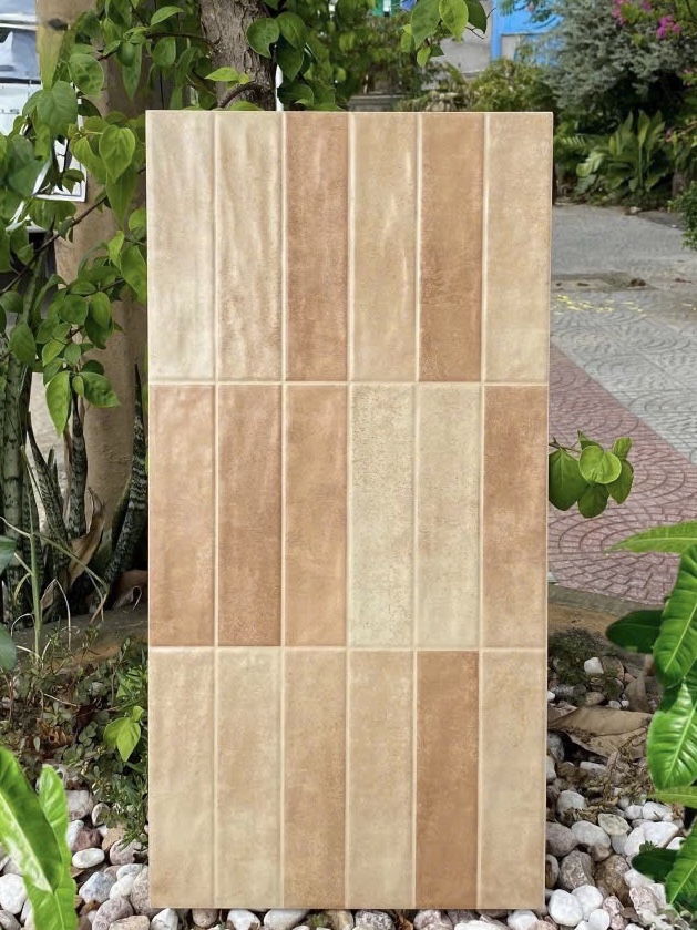 Gạch 30x60 giả thẻ chữ nhật màu vàng nâu hiệu ứng màu ngẫu nhiên bề mặt sóng