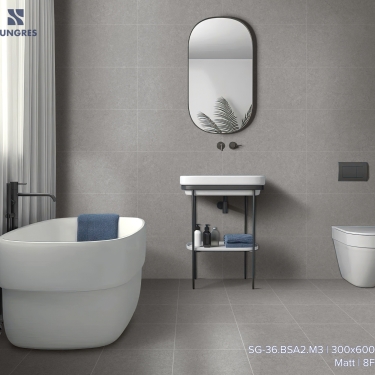 Bề mặt mờ (Matt) là sự lựa chọn hoàn hảo cho tông màu tối. Nó không phản chiếu ánh sáng chói lóa như gạch bóng, mà hấp thụ ánh sáng để tạo ra một không gian dịu mắt, thư giãn và sâu lắng. Bề mặt mờ cũng mang lại cảm giác chạm (tactile) chân thực, mềm mại và cao cấp.