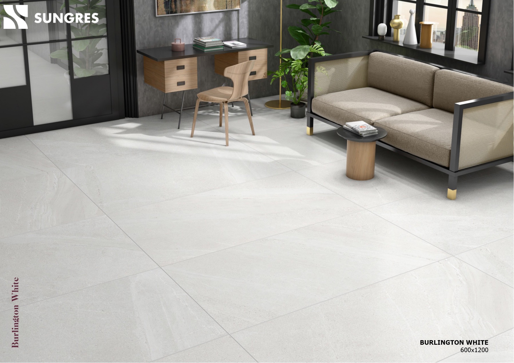 Gạch 60x120 Ấn Độ màu trắng kem vân đá xen hạt Burlington White bề mặt mờ