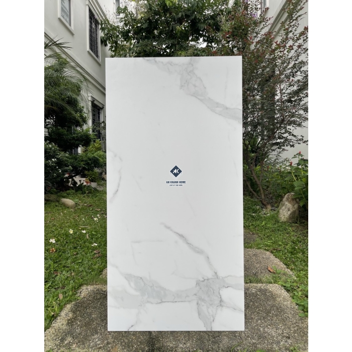 Gạch 60x120 Ấn Độ màu trắng vân mây xám Statuario Silver bề mặt mờ