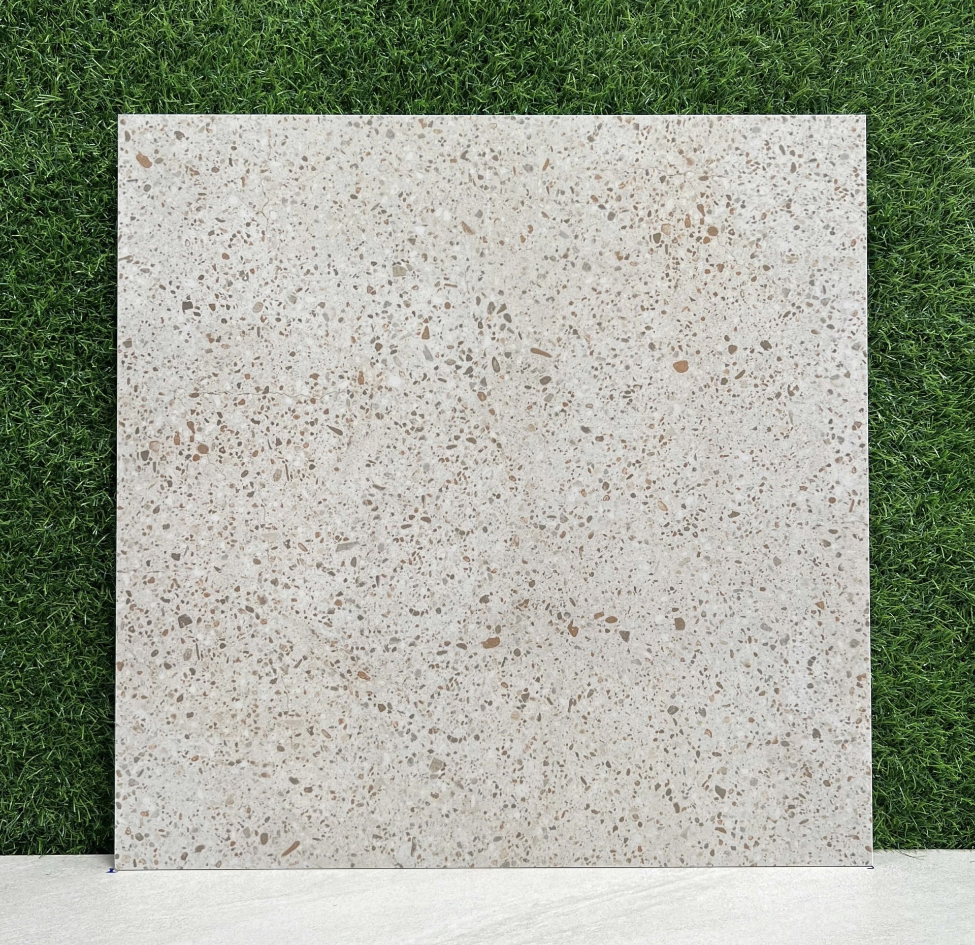 Gạch 60x60 terrazzo màu kem hạt màu xanh vàng mờ