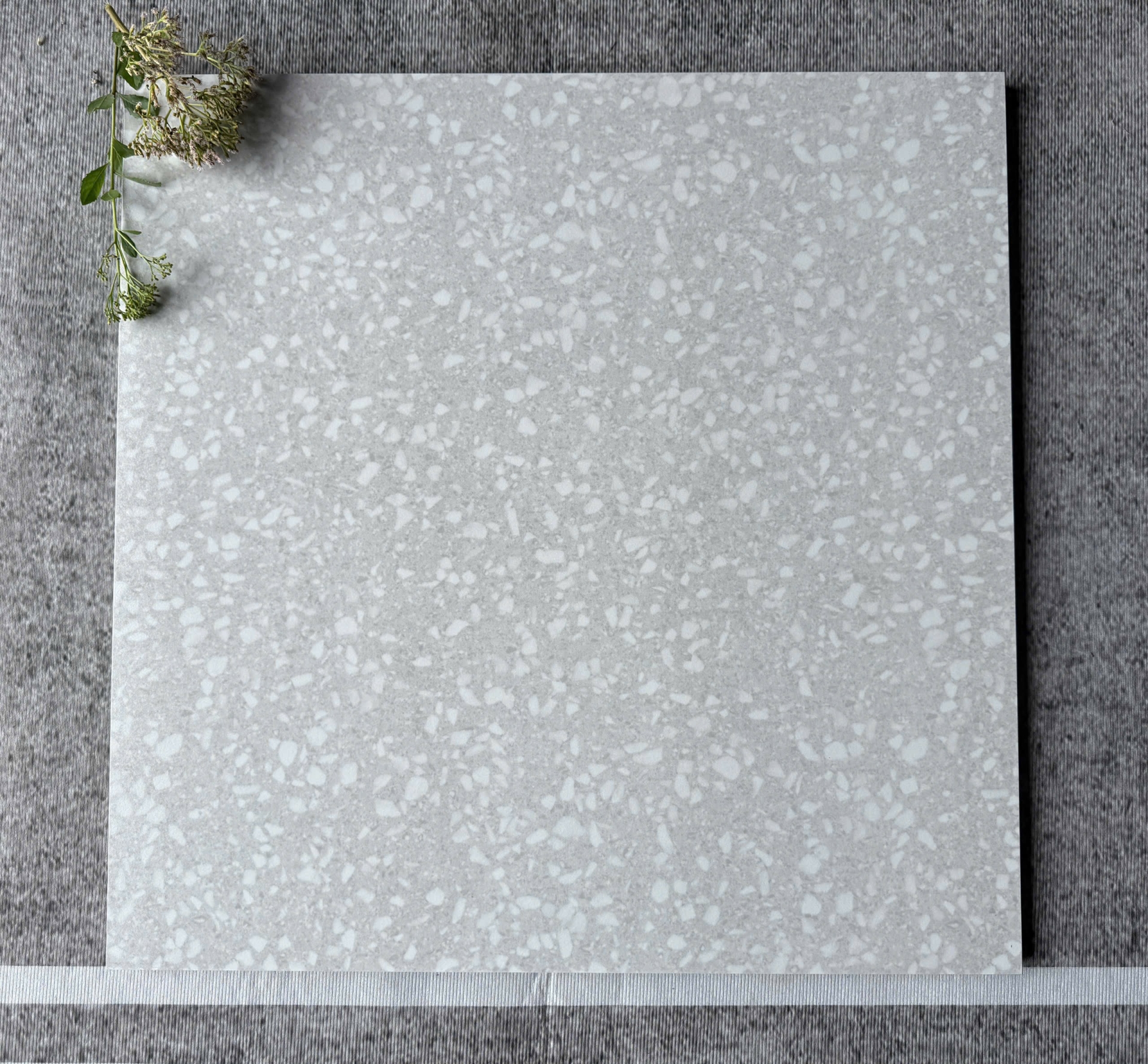 Gạch 60x60 terrazzo màu xám nhạt hạt đá mài màu trắng mờ
