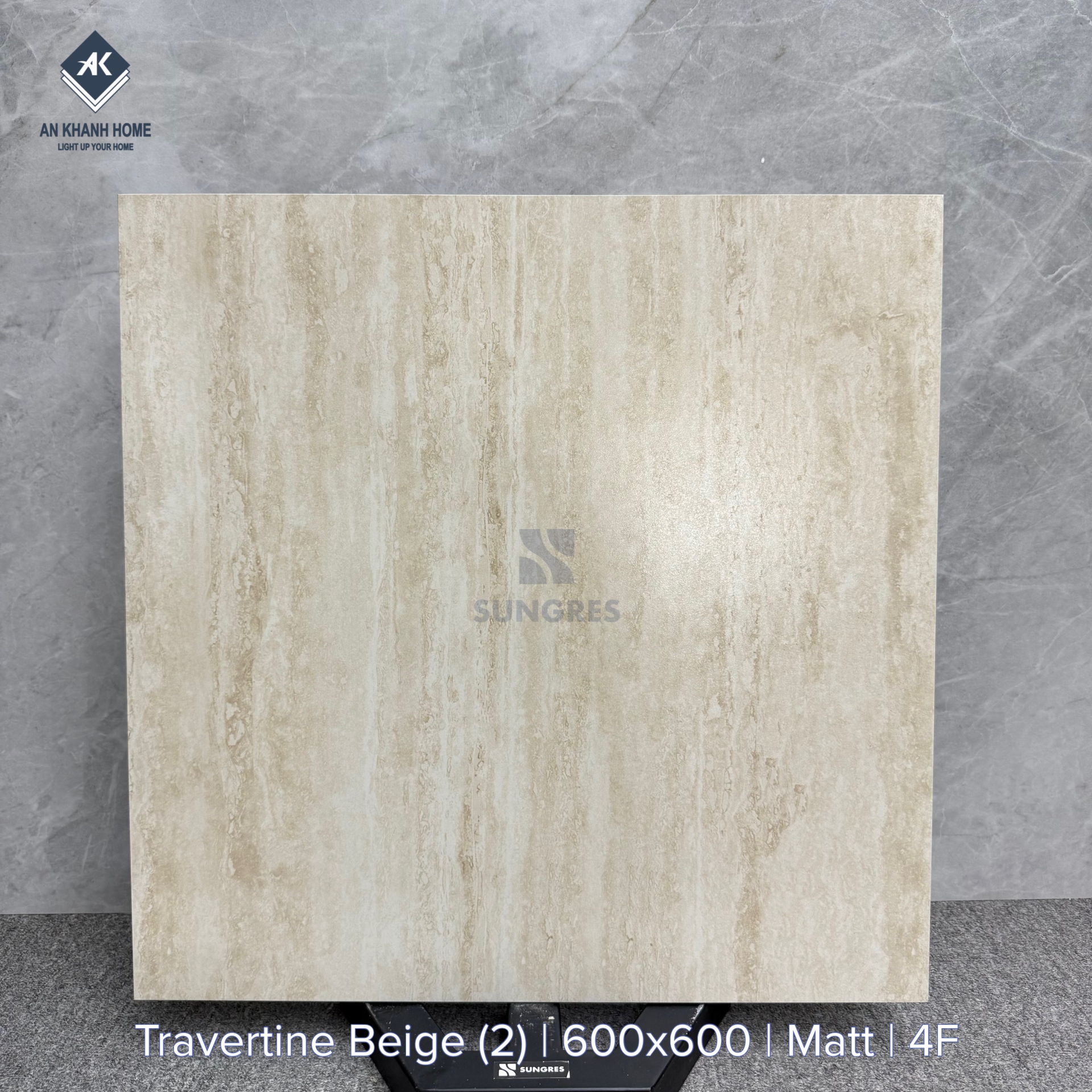 Gạch 60x60 vân travertine màu kem nhạt mờ