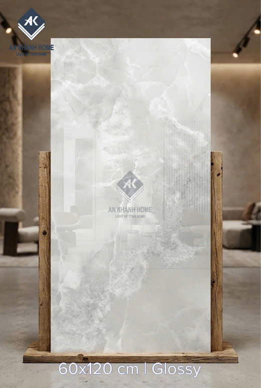 Gạch nhập khẩu 60x120 bóng kính trắng vân đá sang trọng