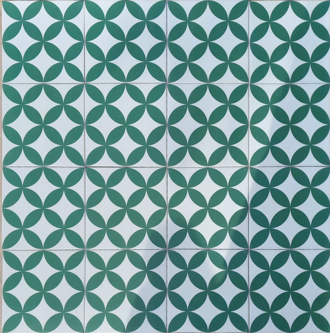 Gạch bông 20x20 đồng tiền xanh cổ vịt nền trắng bề mặt mờ