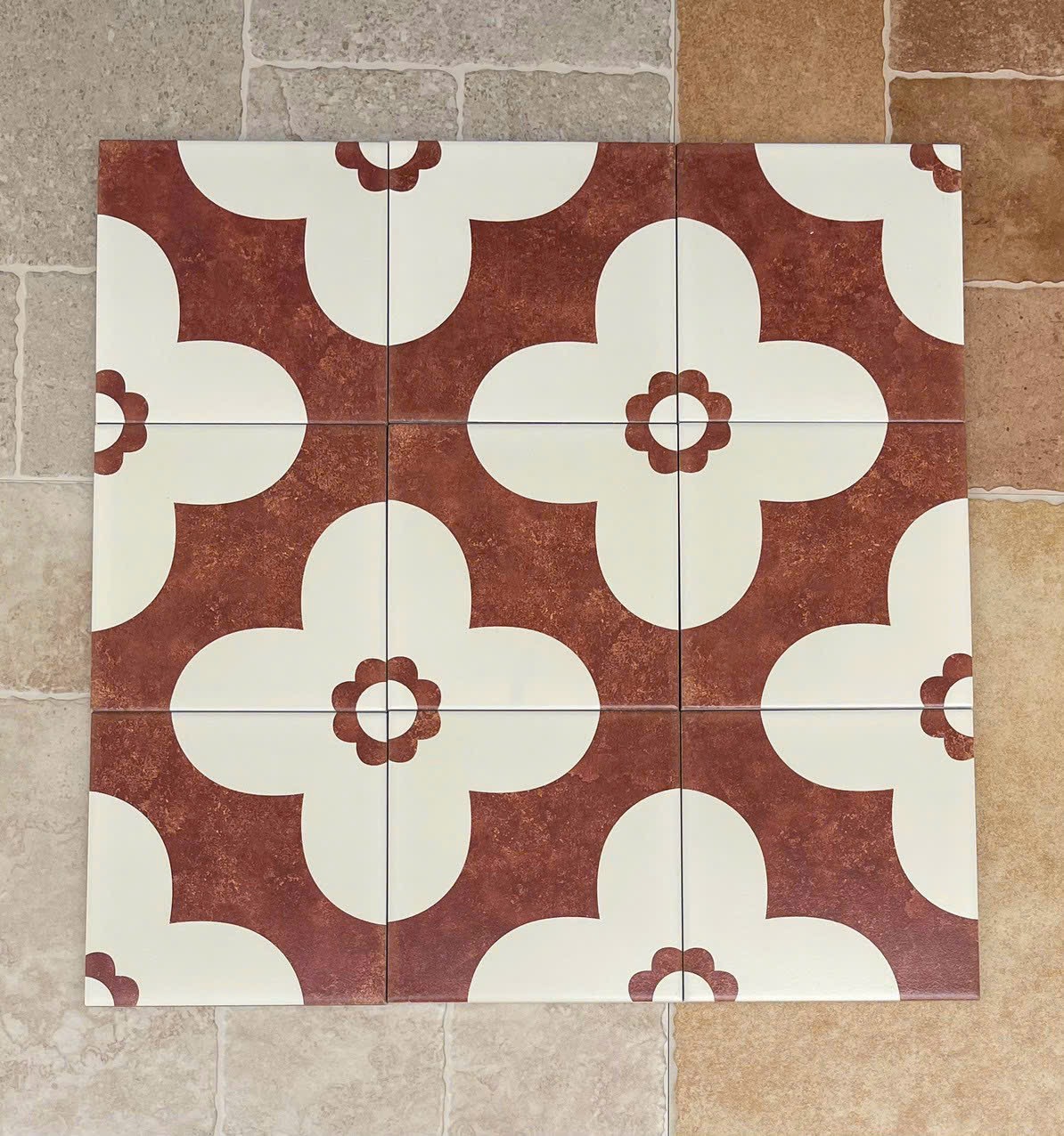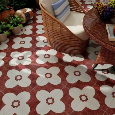 Gạch bông 20x20 hoạ tiết bông hoa trắng đỏ bề mặt mờ