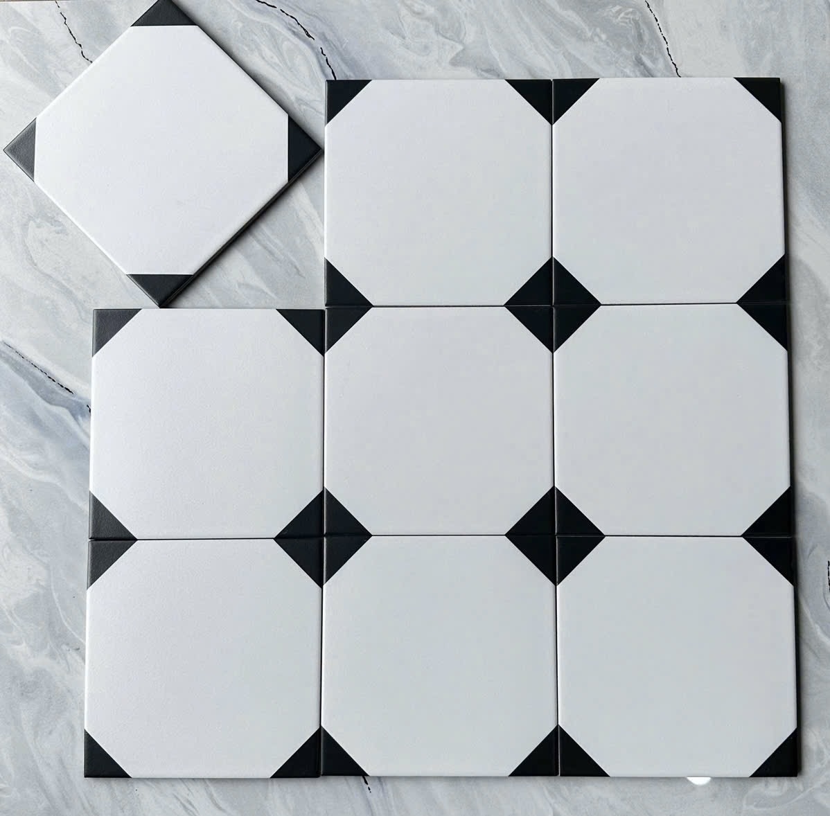 Gạch bông 20x20 màu trắng 4 góc màu đen bề mặt mờ