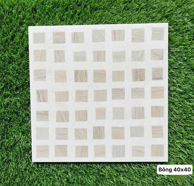 Gạch bông 40x40 bề mặt hoạ tiết ô vuông giả gỗ