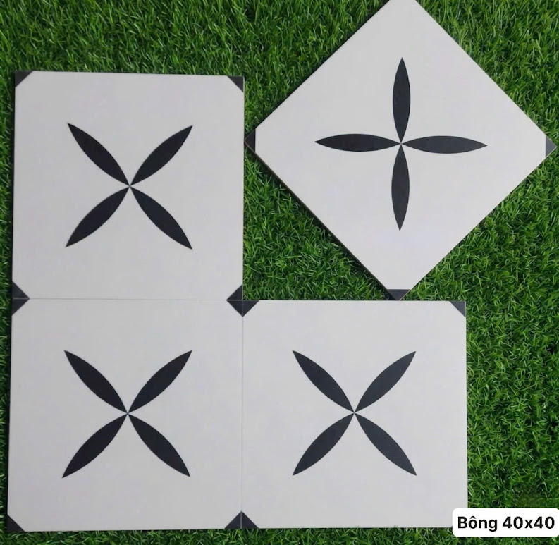 Gạch bông trang trí 40x40 đen trắng hoạ tiết hoa 4 cánh hiện đại