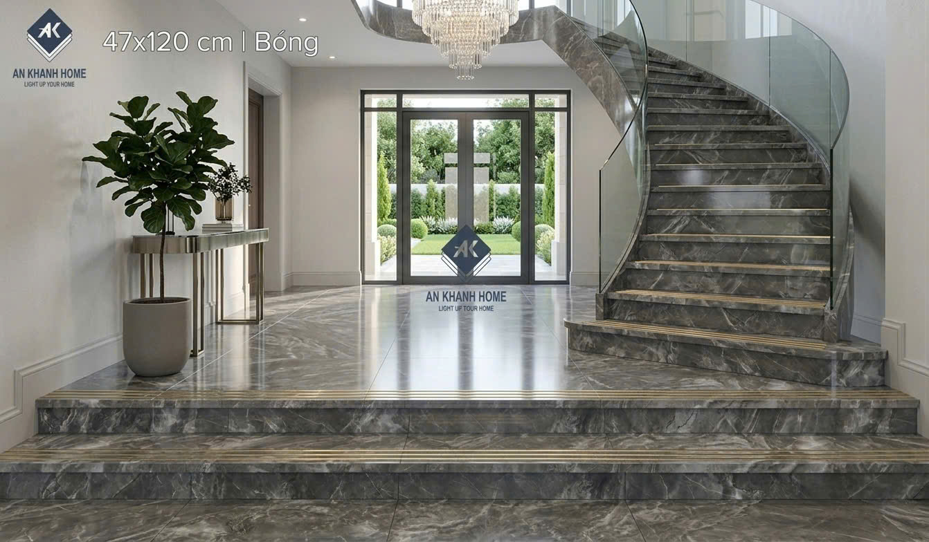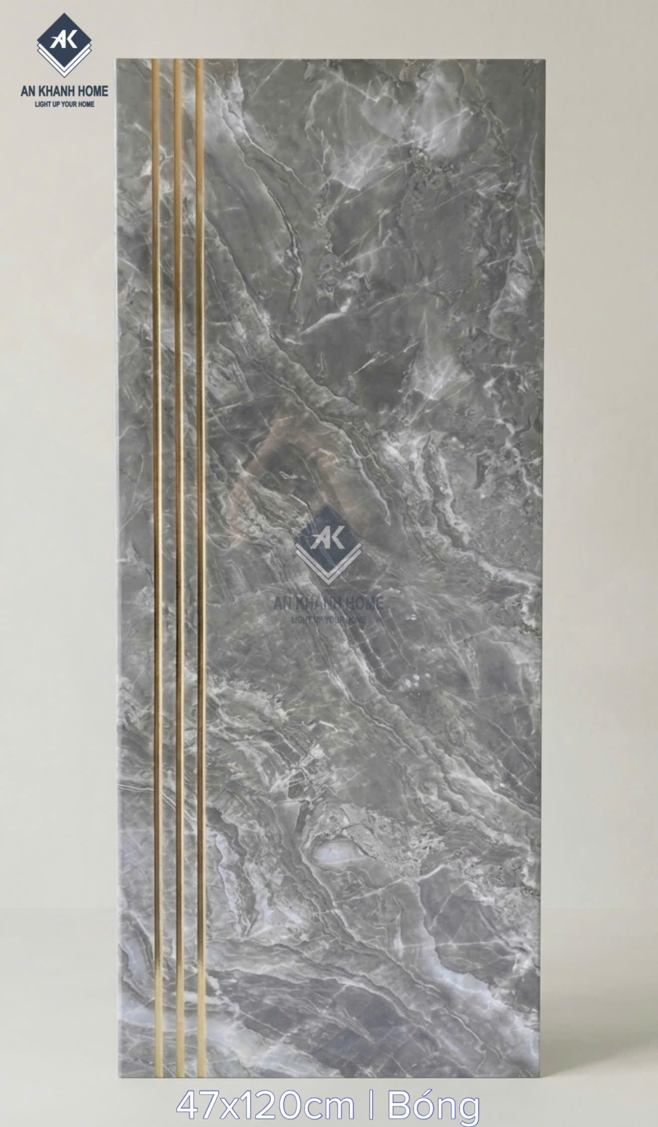 Gạch ốp lát cầu thang xám vân đá khắc kim nhũ vàng 47x120cm