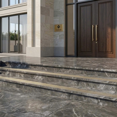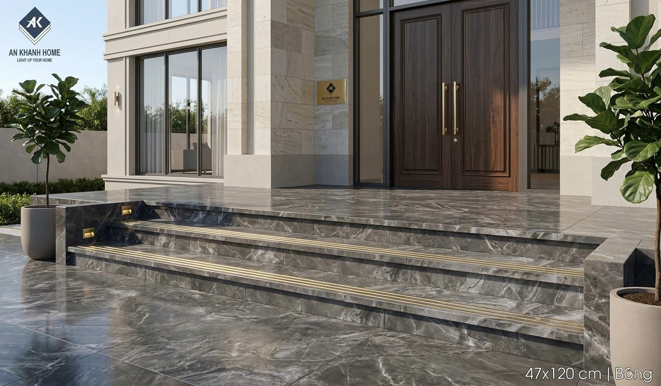 Gạch cầu thang 47x120 bề mặt khắc kim đá marble xám đậm