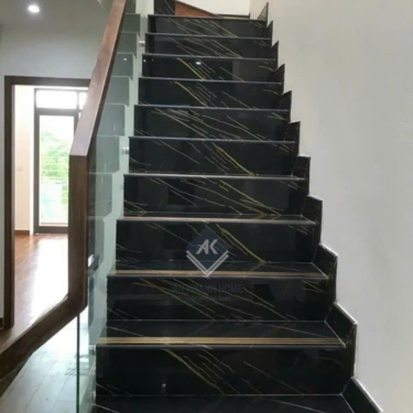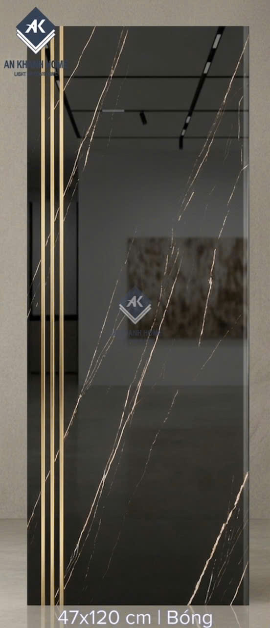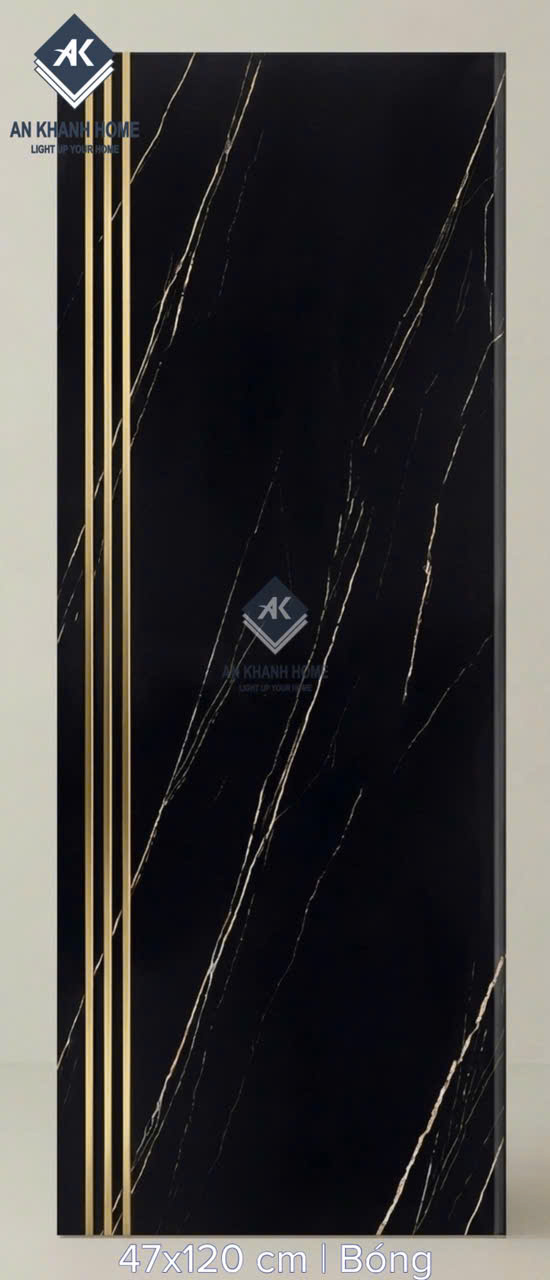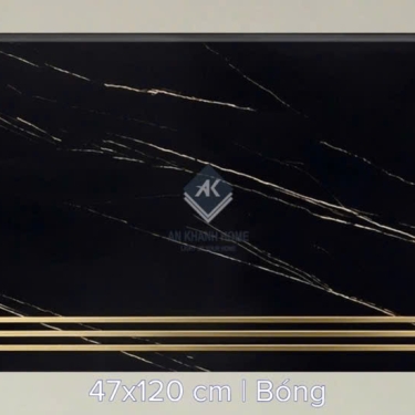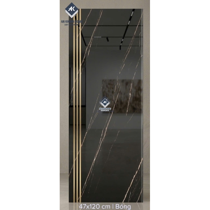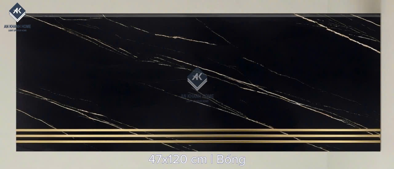 Gạch cầu thang 47x120 bề mặt màu đen khắc kim nhũ vàng