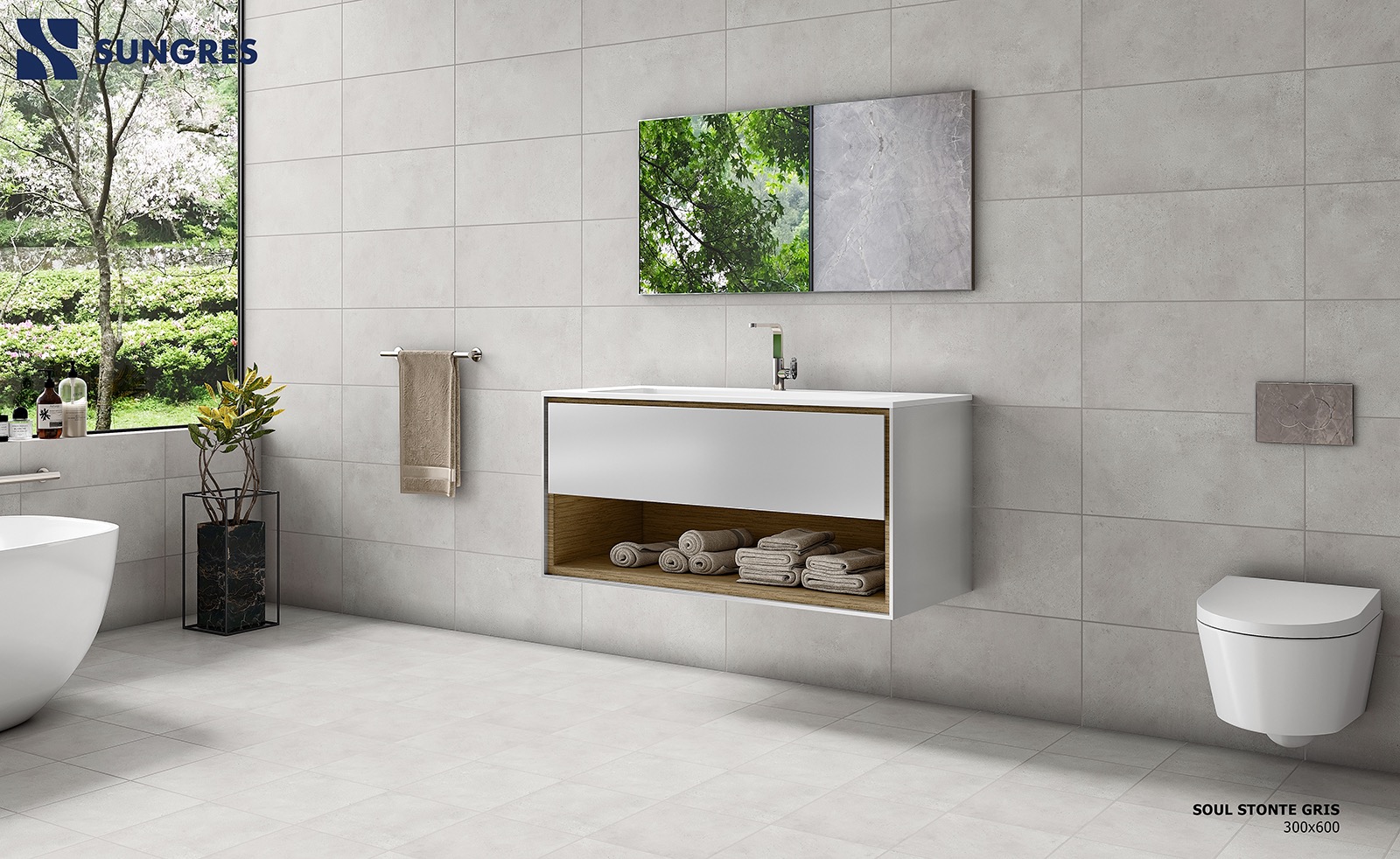 Gạch nhập khẩu 30x60 trắng kem vân đá mix hạt BSA1 bề mặt mờ