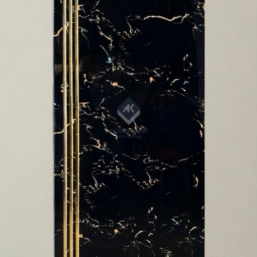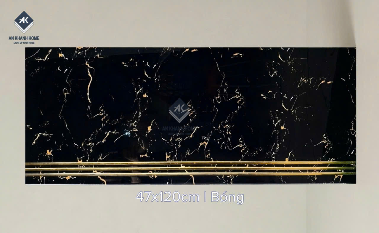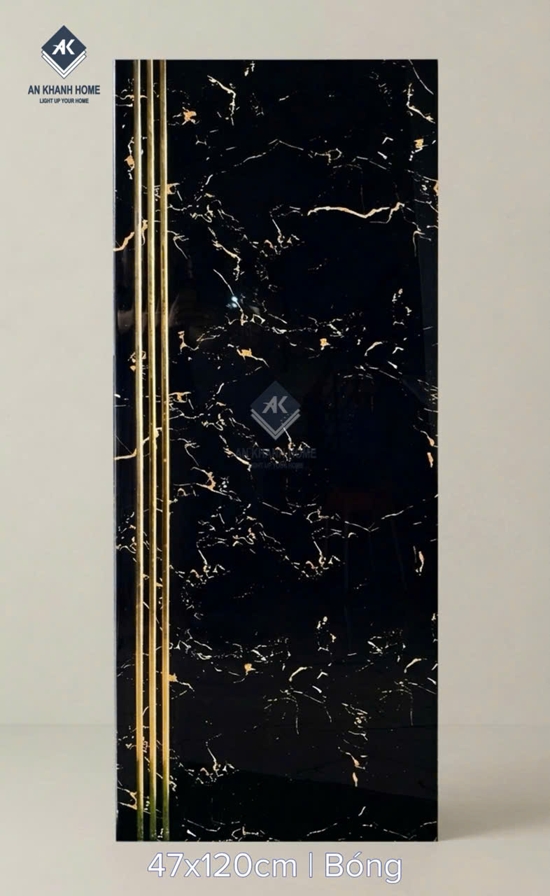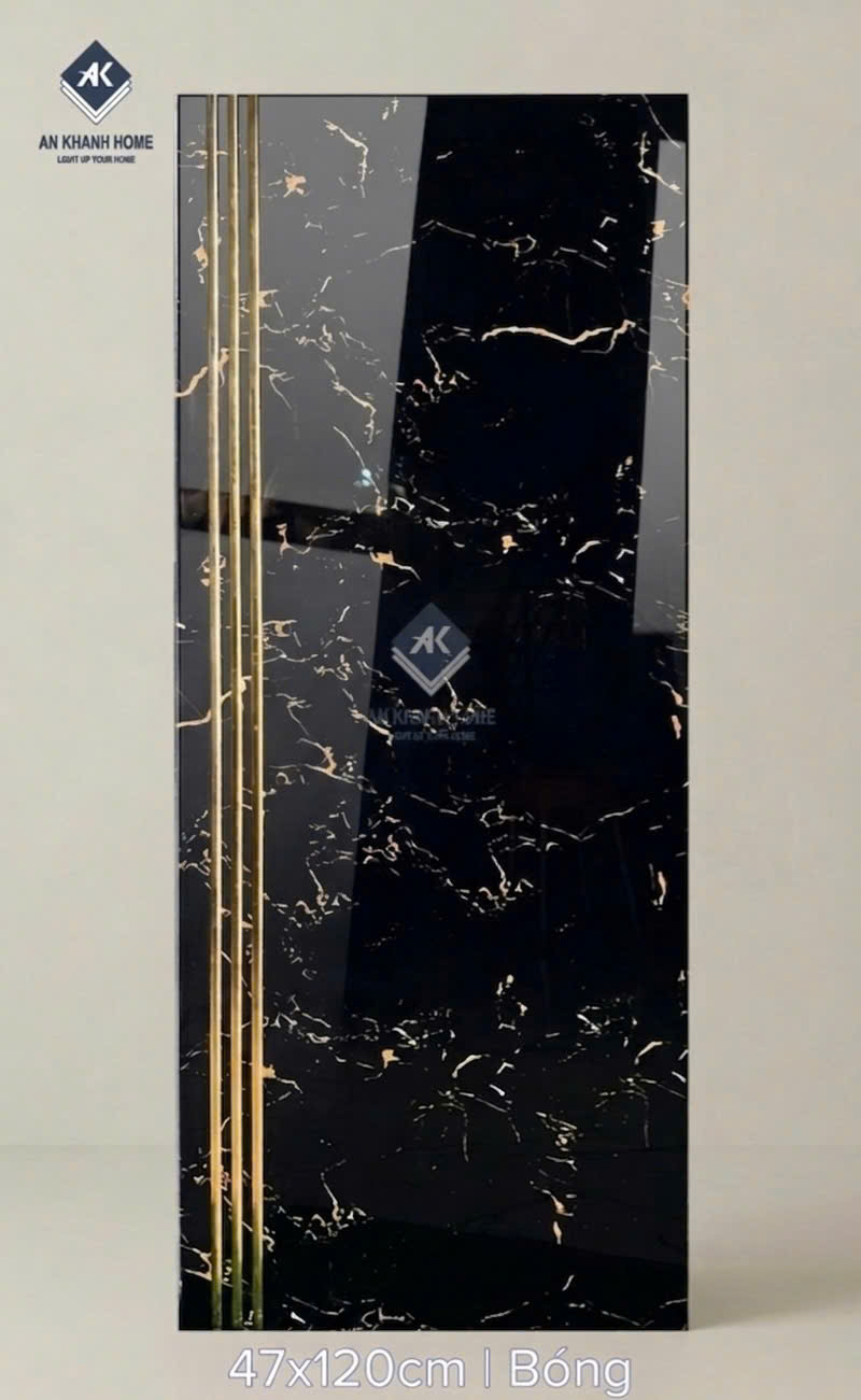 Gạch cầu thang 47x120 bề mặt màu đen khắc kim nhũ vàng