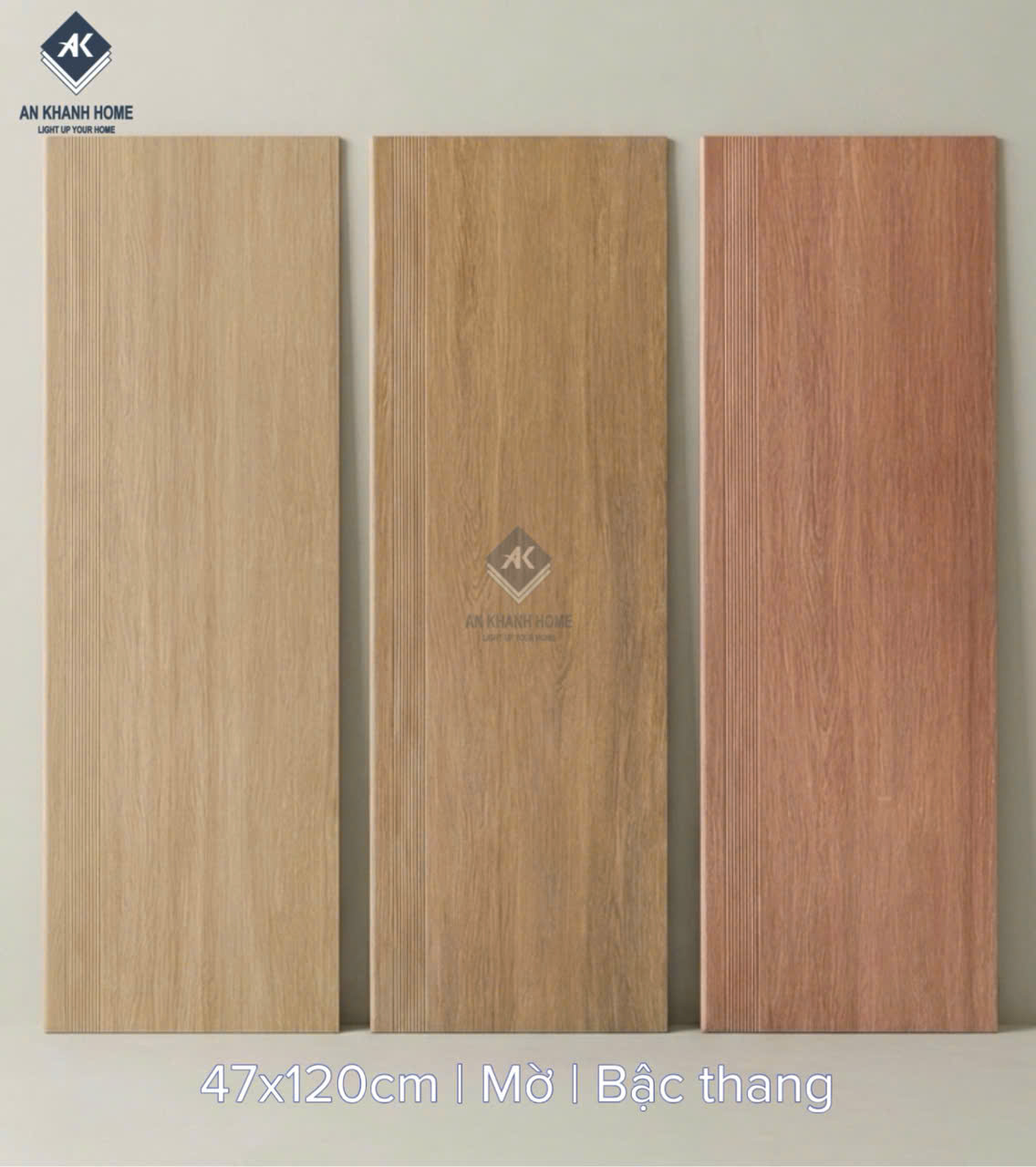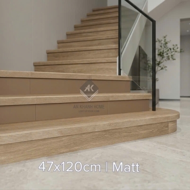 Gạch lát bậc cầu thang vân gỗ 47x120cm bề măt mờ chống trơn