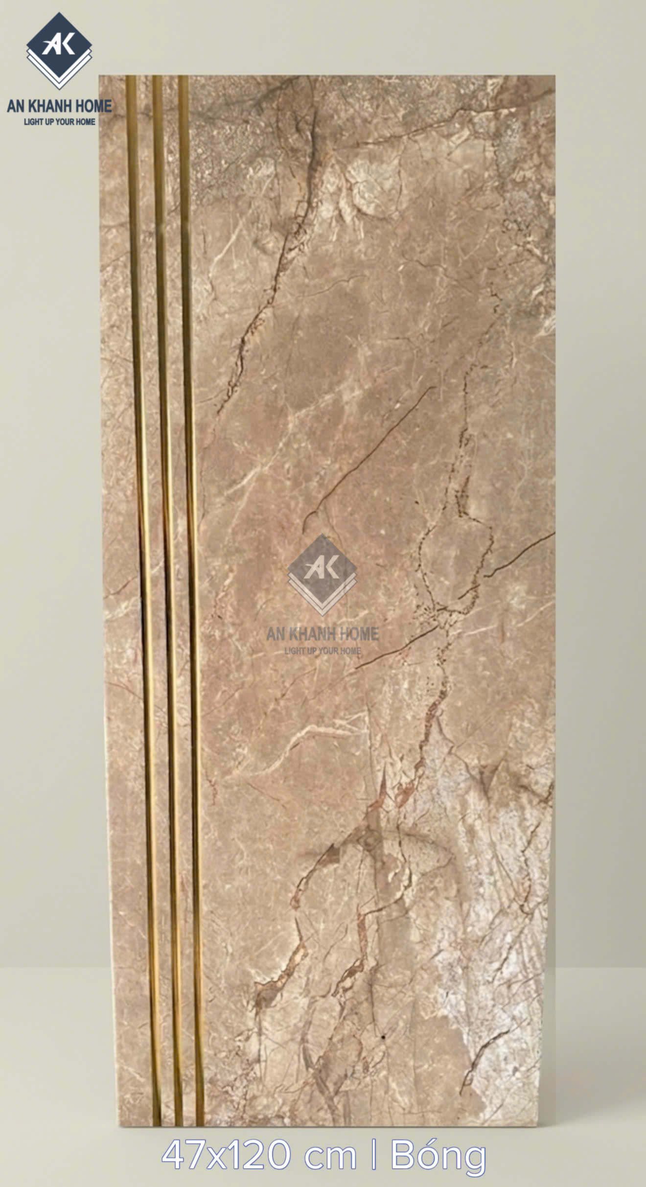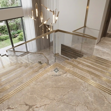 Gạch lát cầu thang 47x120 màu nâu vân đá khắc kim nhũ vàng