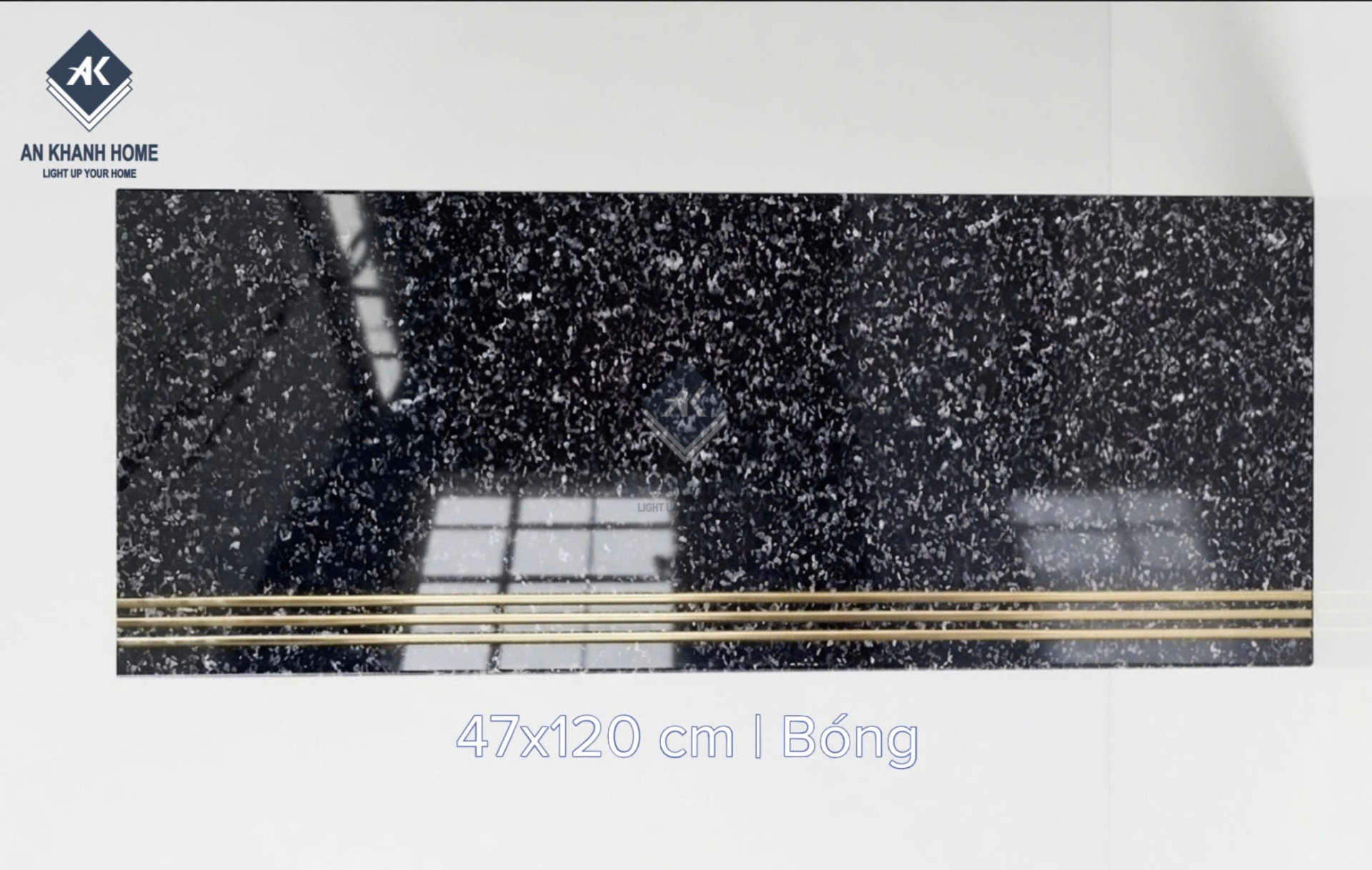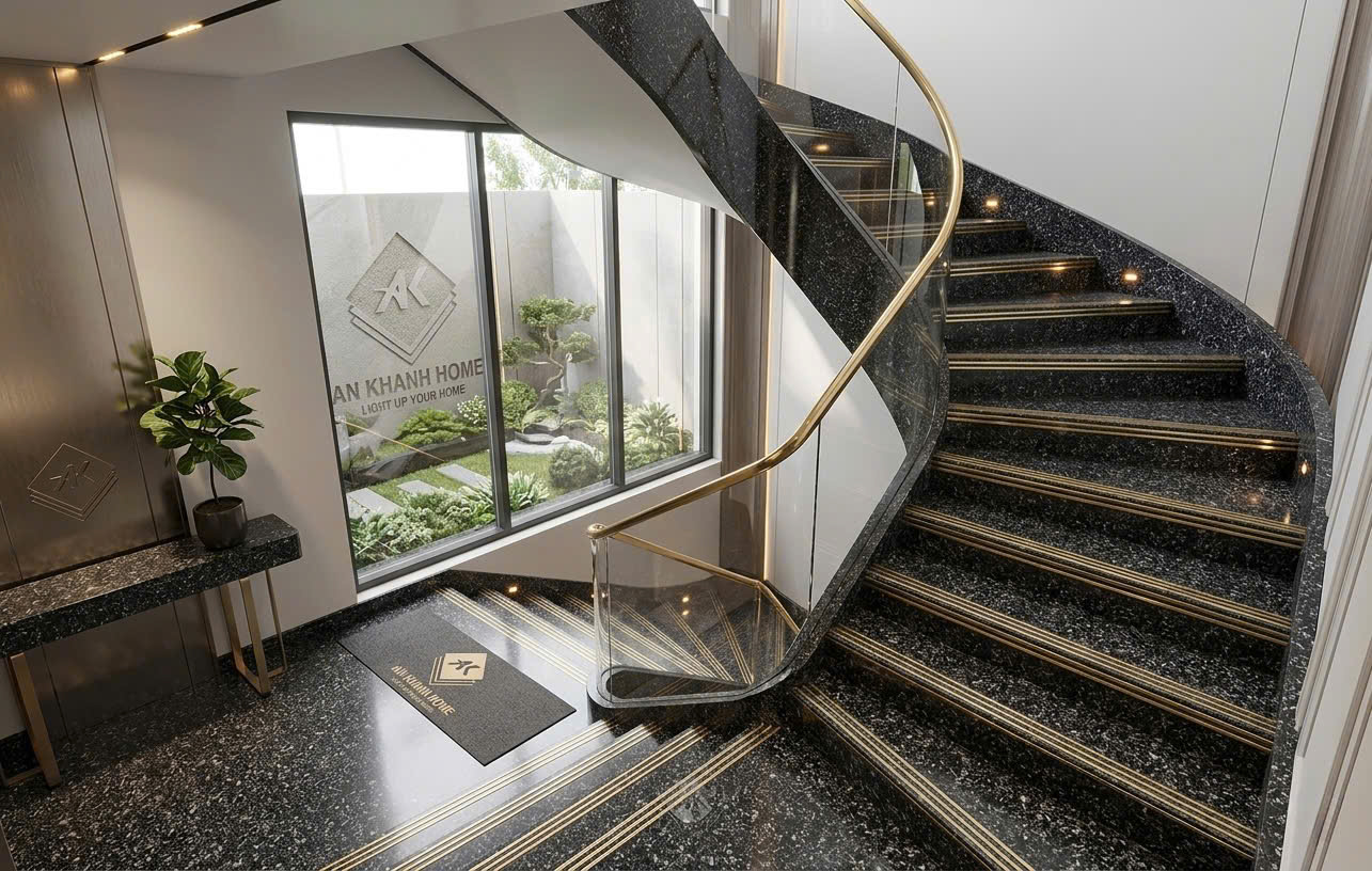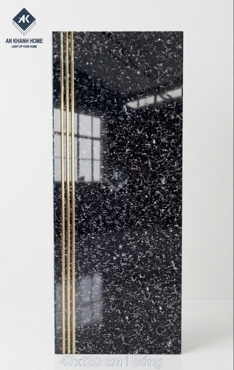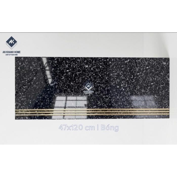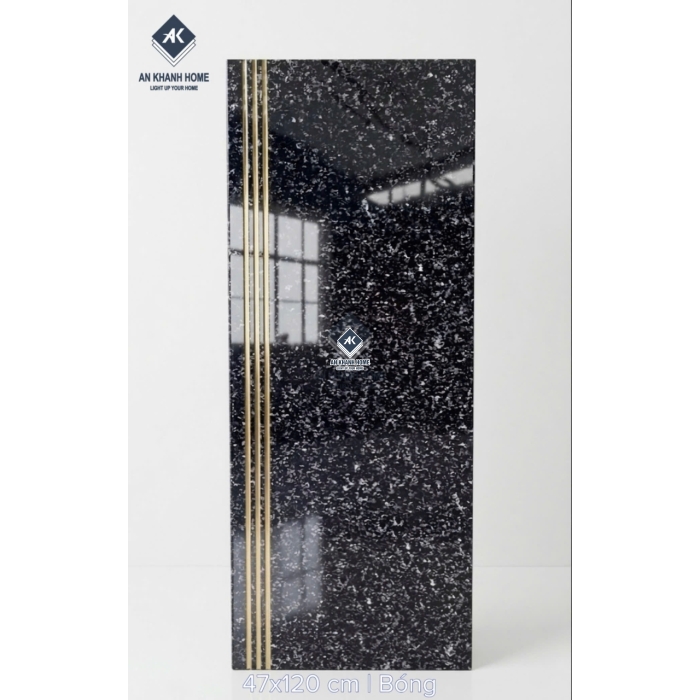 Gạch cầu thang 47x120 bề mặt màu đen khắc kim nhũ vàng