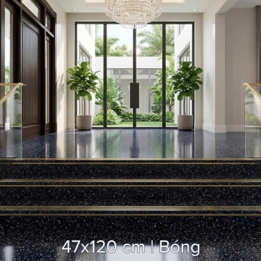 Gạch lát cầu thang 47x120 nhũ vàng giả vân đá đen hoa cương
