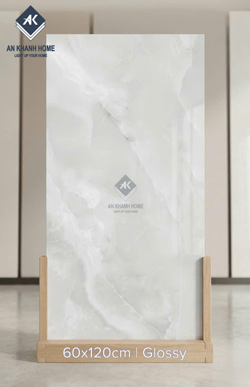 Gạch ấn độ 60x120 bóng kính vân đá Onyx xám nhạt