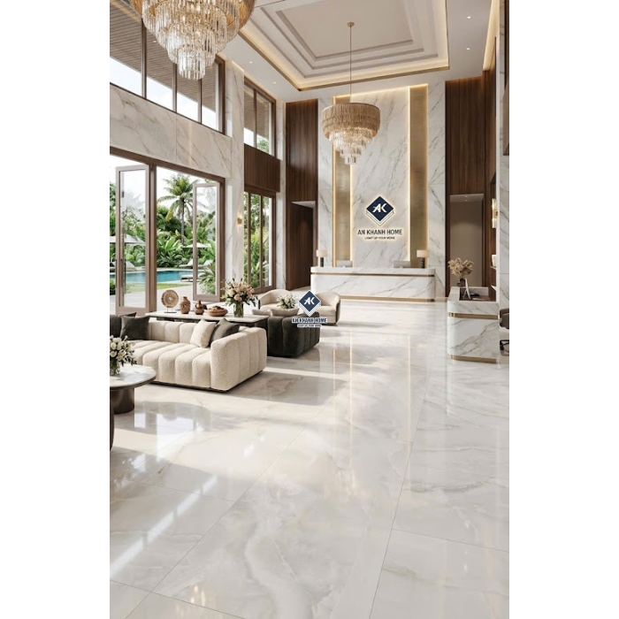 Gạch nhập khẩu 60x120 bóng kính trắng vân đá sang trọng