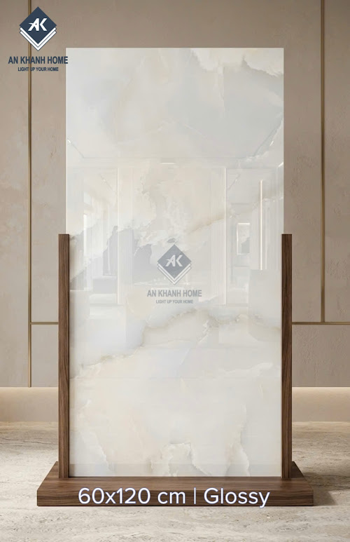 Gạch ấn độ 60x120 bóng kính vân đá Onyx xám nhạt