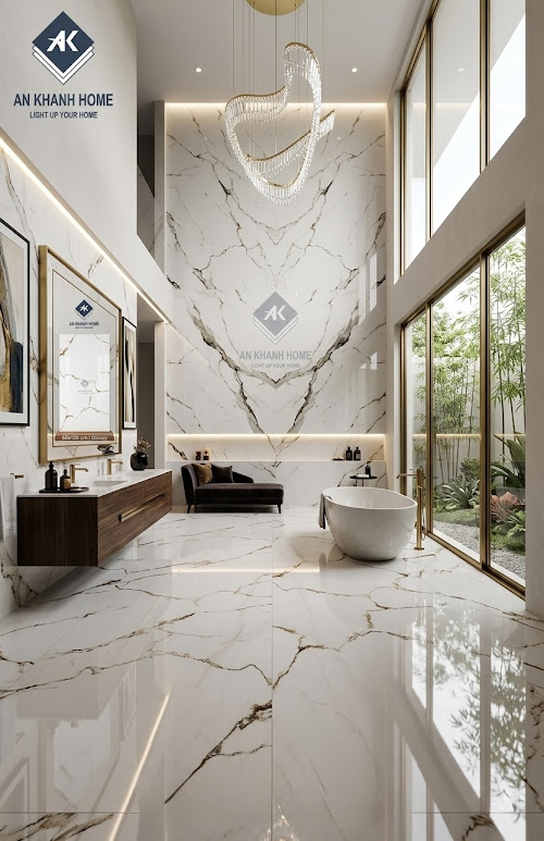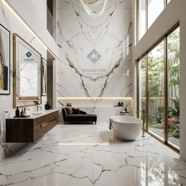 Gạch nhập khẩu 60x120 bóng kính trắng vân đá sang trọng
