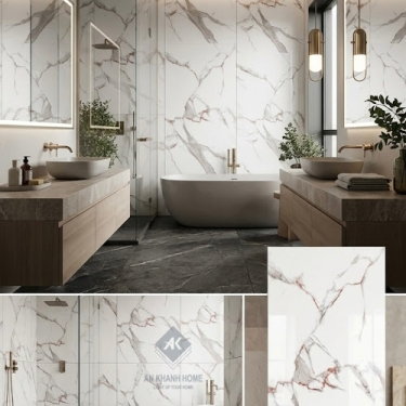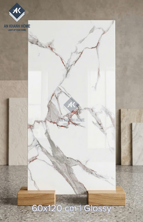 Gạch nhập khẩu 60x120 bóng kính trắng vân đá sang trọng