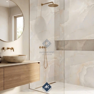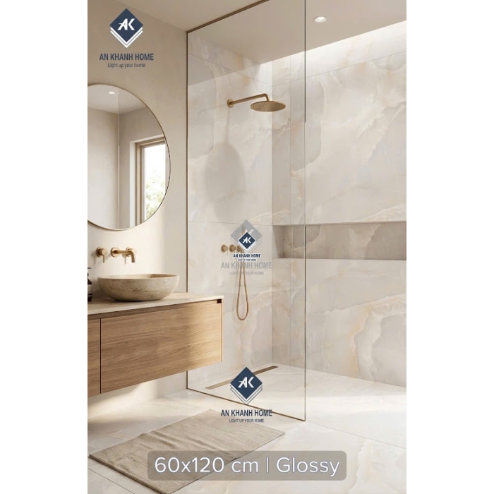 Gạch ốp lát ấn độ 60x120 bóng kính kem vân đá sang trọng