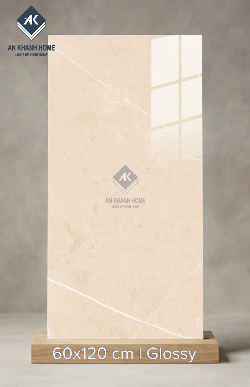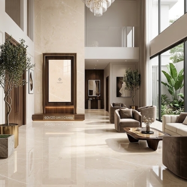Gạch ốp lát ấn độ 60x120 bóng kính kem vân đá sang trọng
