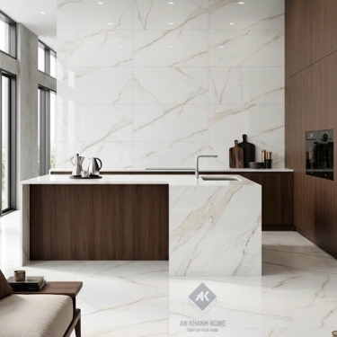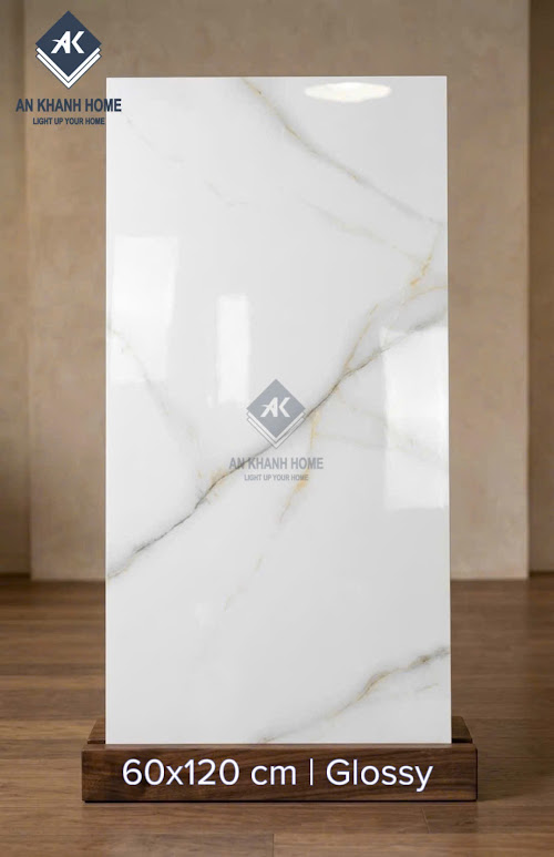Gạch nhập khẩu 60x120 bóng kính trắng vân đá sang trọng