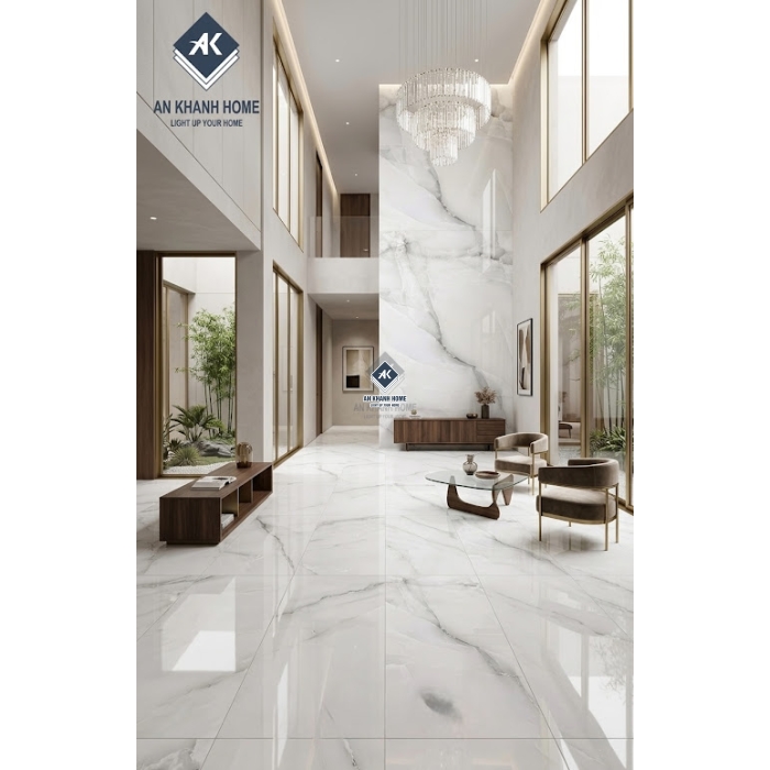 Gạch nhập khẩu 60x120 bóng kính trắng vân đá sang trọng