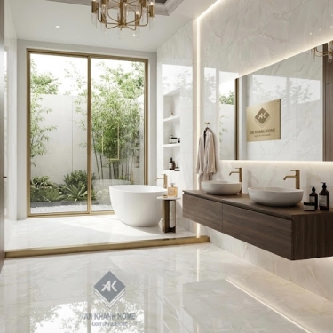 Gạch nhập khẩu 60x120 bóng kính trắng vân đá sang trọng