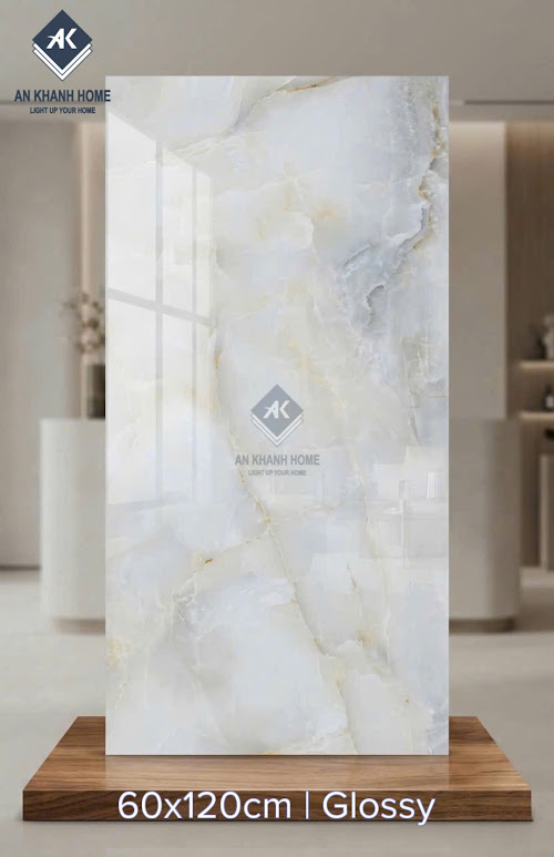 Gạch nhập khẩu 60x120 bóng kính trắng vân đá sang trọng