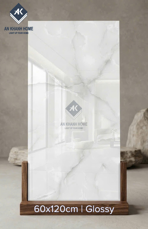 Gạch nhập khẩu 60x120 bóng kính trắng vân đá sang trọng