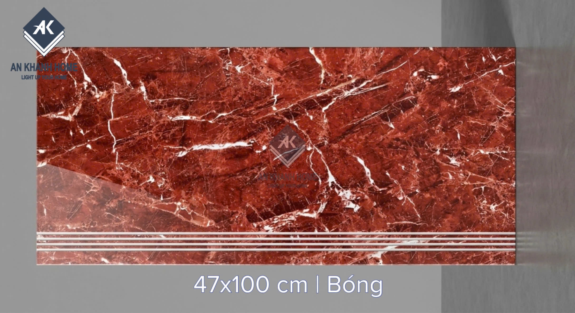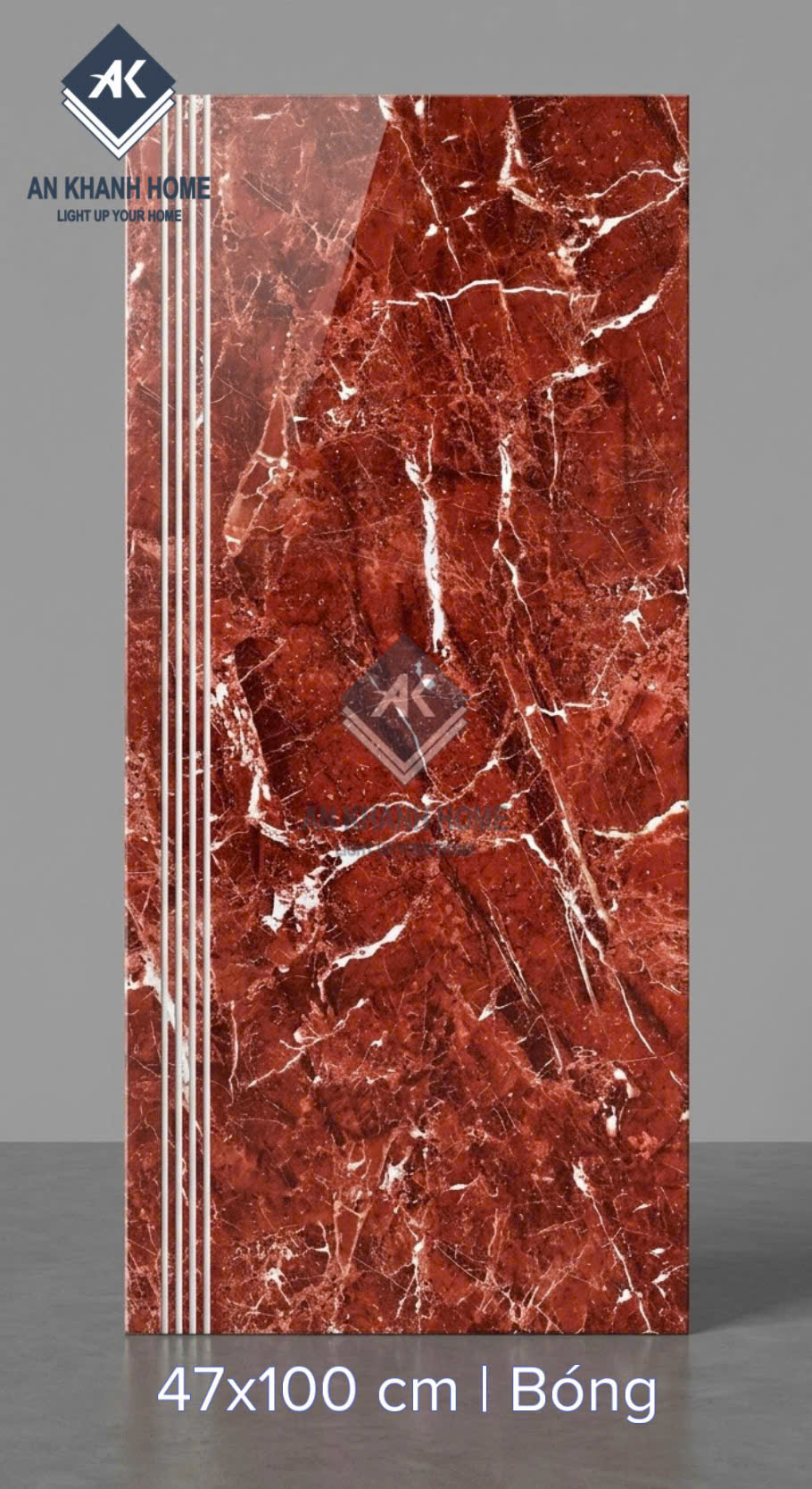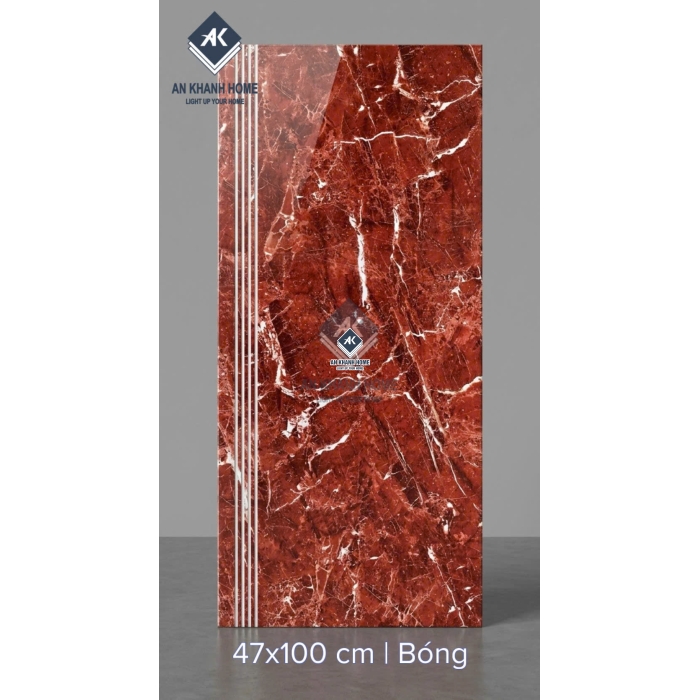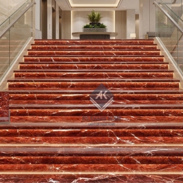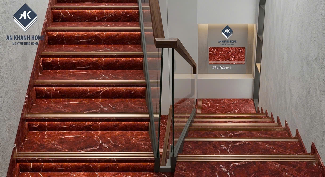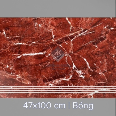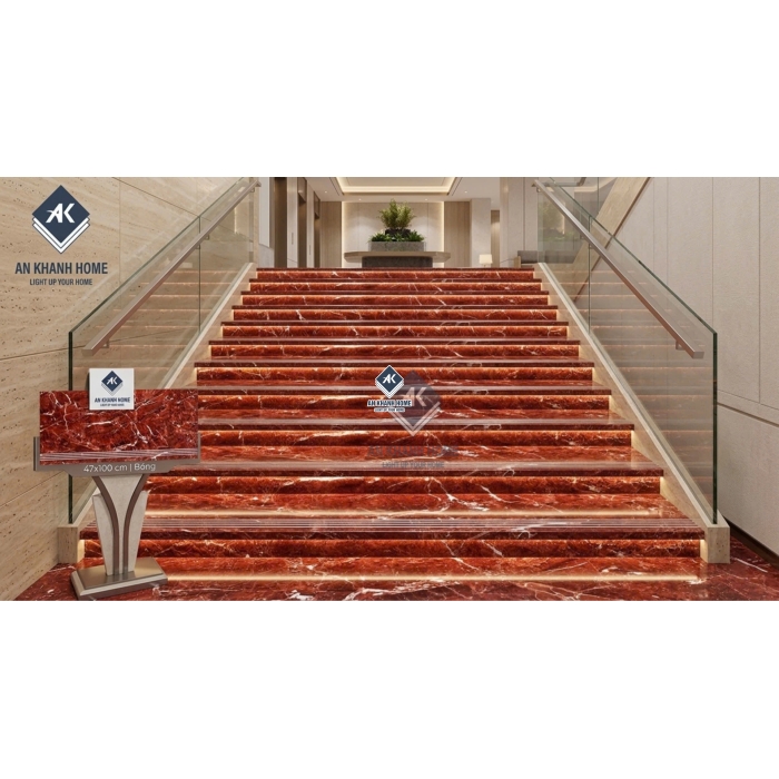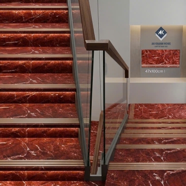 Gạch ốp lát bậc cầu thang 47x100cm đỏ vân đá trắng