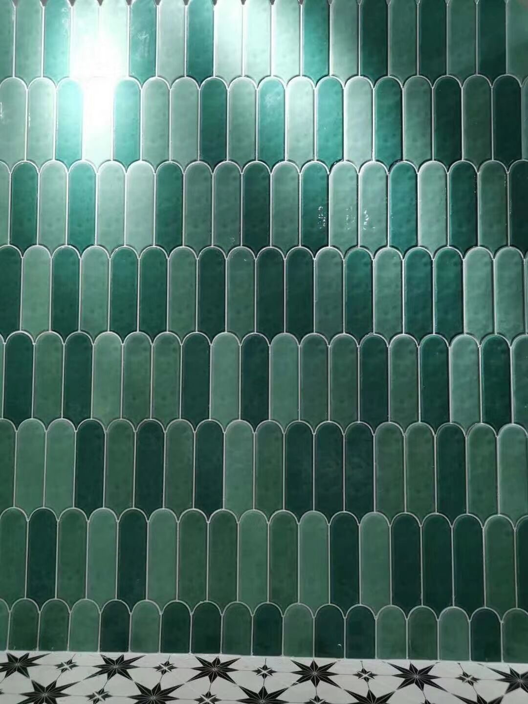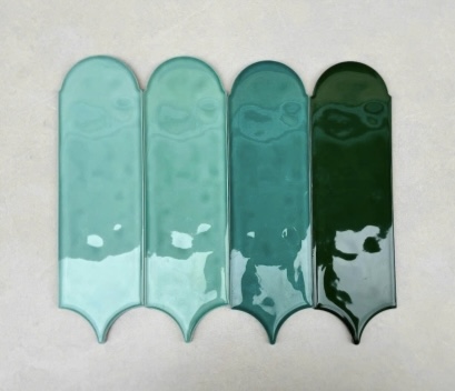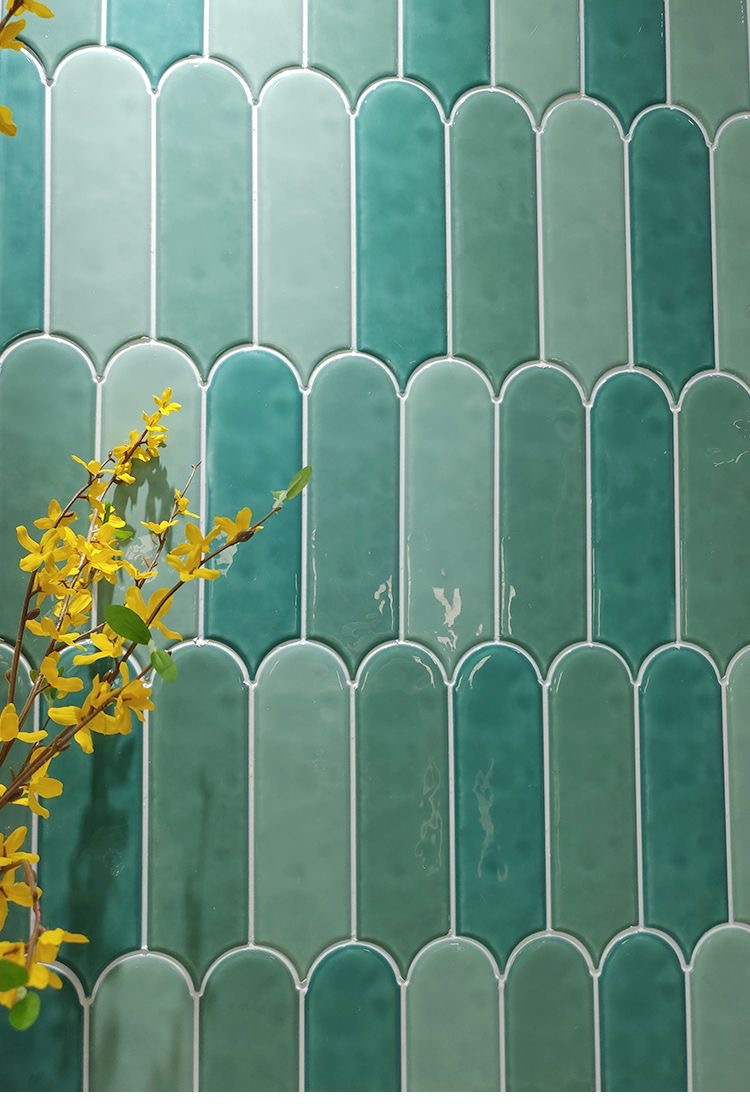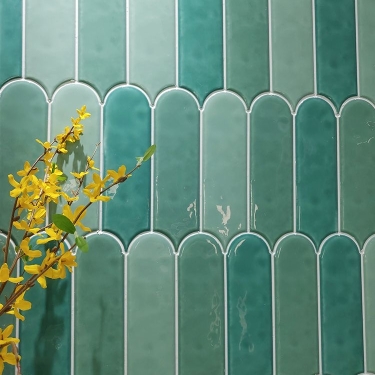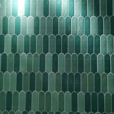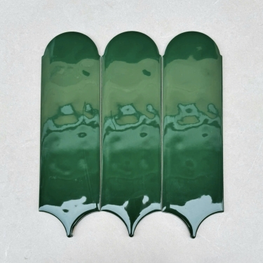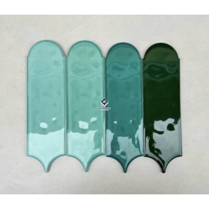 Gạch thẻ lông vũ màu xanh lá đậm bề mặt bóng gợn sóng